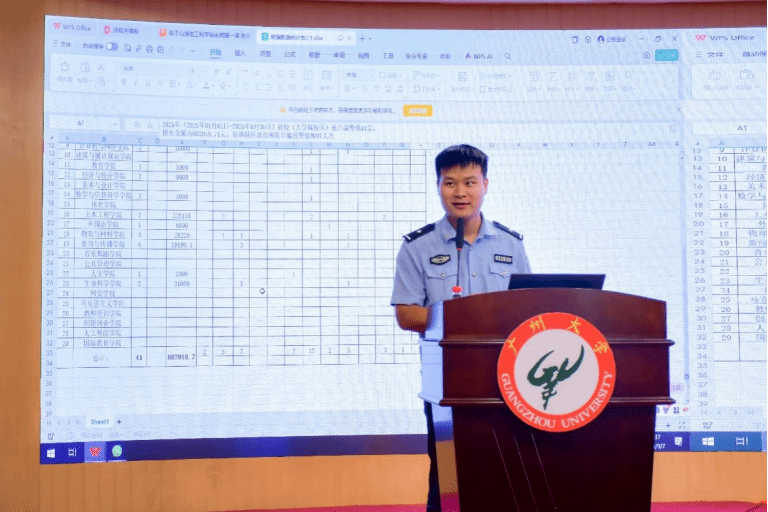 随后学院党委副书记谢玲依次介绍出席领导:党委书记陈泽龙、院长唐冬、副院长曾衍瀚、教师代表黄煜、新生班主任代表刘颖、陈金鑫、小谷围派出所陈锐城警官,辅导员团队以及各位在场的领导老师。