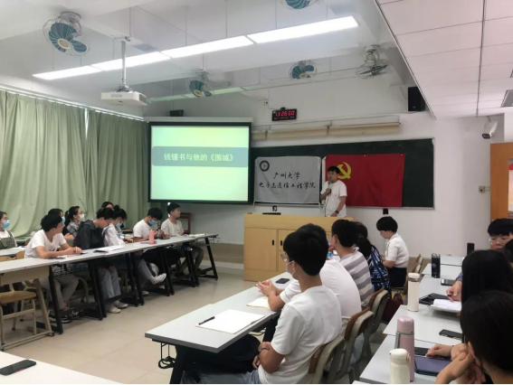 欧阳曦老师做简要的开场介绍之后,学生党员何伟聪同志和陈垚竹同志分别上台和大家分享自己阅读《围城》的心得体会。