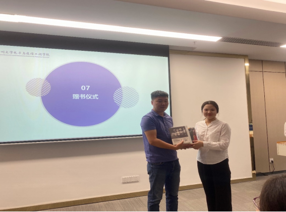 同时为了在我院黄埔校区营造良好的阅读氛围,学生第二党支部发动学院全体师生捐赠各类图书共计100余本。在此次研究生会成立之际,研究生辅导员王志杰老师代表学院向研究生会赠书,宣传部部长易春花作为学生代表领取书籍。研究生辅导员王志杰老师希望全体研究生多读书,读好书,养成良好的阅读习惯。同时鼓励研究生会干部配合学院工作安排,做好上传下达,并及时将同学们的意见和建议反馈给学院,发挥好“桥梁纽带”的作用。