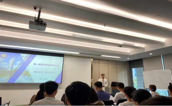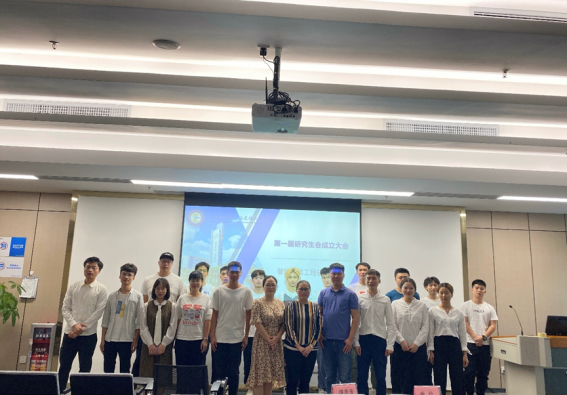 研究生会成立大会于2021年10月15日中午在黄埔研究生院B3-213召开。出席会议的有学院党委副书记谢玲、研究生秘书谭芳芳、研究生辅导员王志杰和研究生会新任主席团成员、各部门部长以及研究生会新成员。