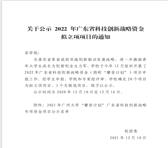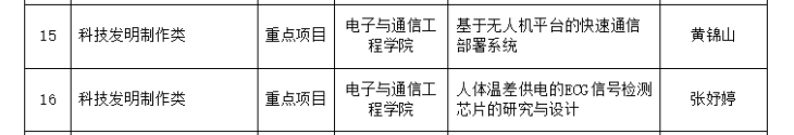 为落实省委、省政府实施创新驱动发展战略,进一步激励青年大学生成长为创新创业生力军,学院于今年12月组织开展了 2022年广东省科技创新战略资金(简称“攀登计划”)项目申报工作。经学生申报、学院推荐和学校专家组评审,我院副院长曾衍瀚老师指导,张妤婷同学负责的“人体温差供电的ECG信号检测芯片的研究与设计”项目和由实验中心谢斌盛老师、刘葵老师及我院揭海老师共同指导,黄锦山同学负责的“基于无人机平台的快速通信部署系统”项目,均喜获得重点项目。