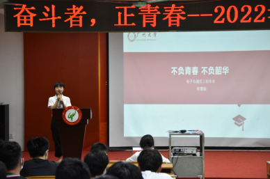 会上,唐冬院长首先以“奋斗者,正青春”为主题向同学们分析了国家和粤港澳大湾区战略以及近年来省内外的考研趋势、学院录取情况等,解答了广大学生为什么要考研、如何准备考研等一系列问题,并通过近几年研究生的招生数据向同学们阐明学校理工科研究生招生的指标有所提升,鼓励同学们积极考研本校。唐院长的话大大鼓舞了同学们进一步读研深造的士气,使大家对考研有了一个更具体、清晰的认识。