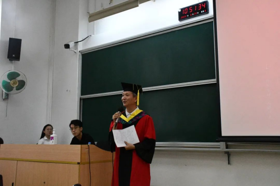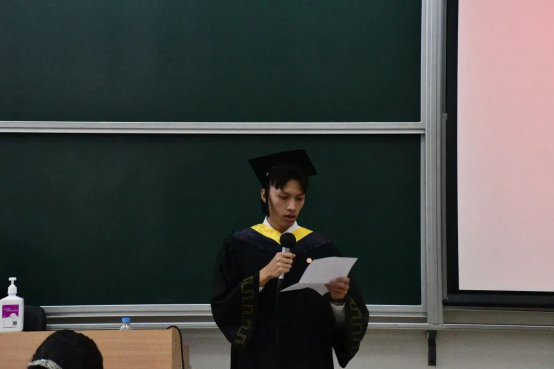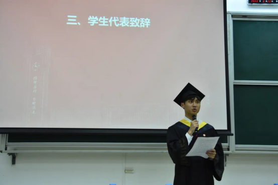 两位学生代表,表达了对母校、学院、老师及同学的深切感激,感谢每一位在学业及生活处处给予无私的关爱及帮助的人。也表达了对自己青春的不舍和未来的憧憬。