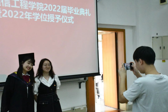 大家一起观看2022届毕业生纪念视频。回顾懵懂无畏的大一、意气风发的大二、成熟内敛的大三、硕果累累的大四,通过大屏幕回忆大学四年的点点滴滴.....