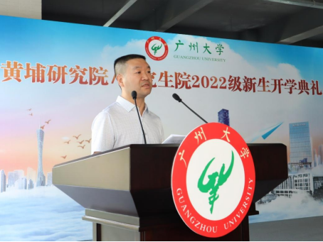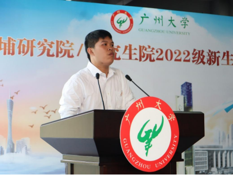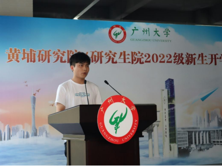 紧接着是老生代表陈卓同学发言。陈卓同学获得了广大黄埔研究院2021-2022学年优秀学生的荣誉,陈卓师兄给同学们提出了三个建议:第一,确定一个目标并踏实前进;第二,要有直面困难的勇气;第三,坚持锻炼身体。师兄希望各位同学未来能扎实推进自己的工作,走出自己绚烂的人生。