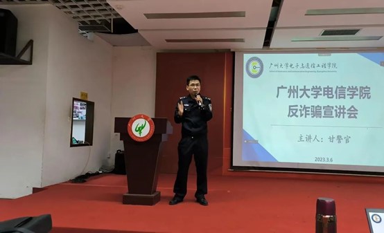 针对毕业生马上要走出校园走进社会,学院有幸邀请到小谷围派出所的社区民警甘警官为毕业生进行反诈骗宣讲。甘警官用通俗明了的语言介绍了近期高校发生的刷单诈骗、网聊诈骗的手法,还介绍了常见的客服诈骗,培训诈骗,虽然这些诈骗的手段常见,但还是有不少同学上当,希望同学们平时要提高警惕,避免落入这些不法分子精心布下的局。