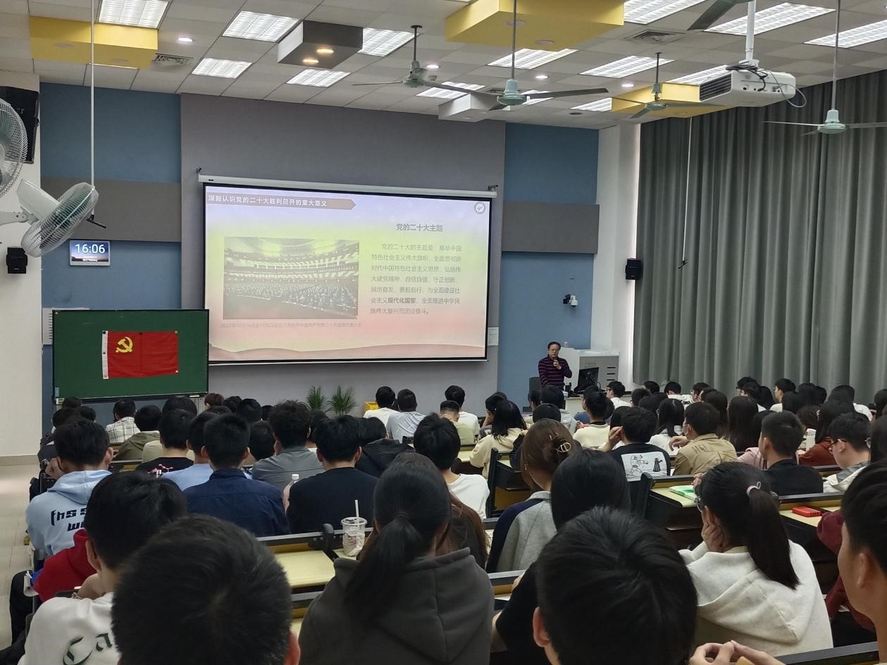 为深刻宣传学习贯彻党的二十大精神,继续认真贯彻落实学院党委(总支)书记、院长每学期上第一堂思想政治理论课制度,学院党委书记陈泽龙老师以《奋力在实现中国式现代化中建功立业》为题于3月14日下午16:00-18:00在理科南210为学院第三期入党积极分子讲授春季学期“思政第一课”,同时进行sm调教