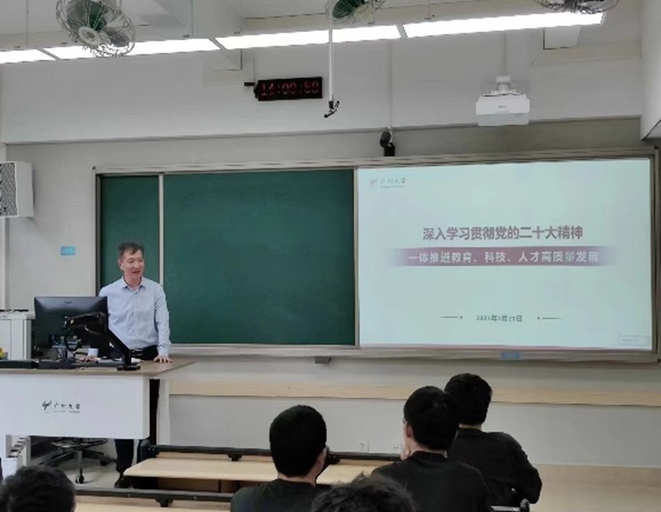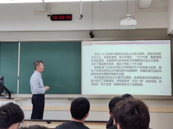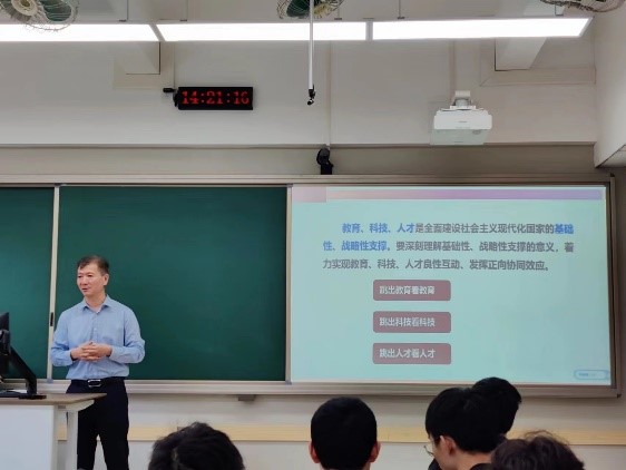 院长唐冬教授在文新202课室为物联211班的同学们讲授新学期的“思政第一课”,以《一体推进教育、科技、人才高质量发展》为题,重点围绕党的二十大精神的核心要义。