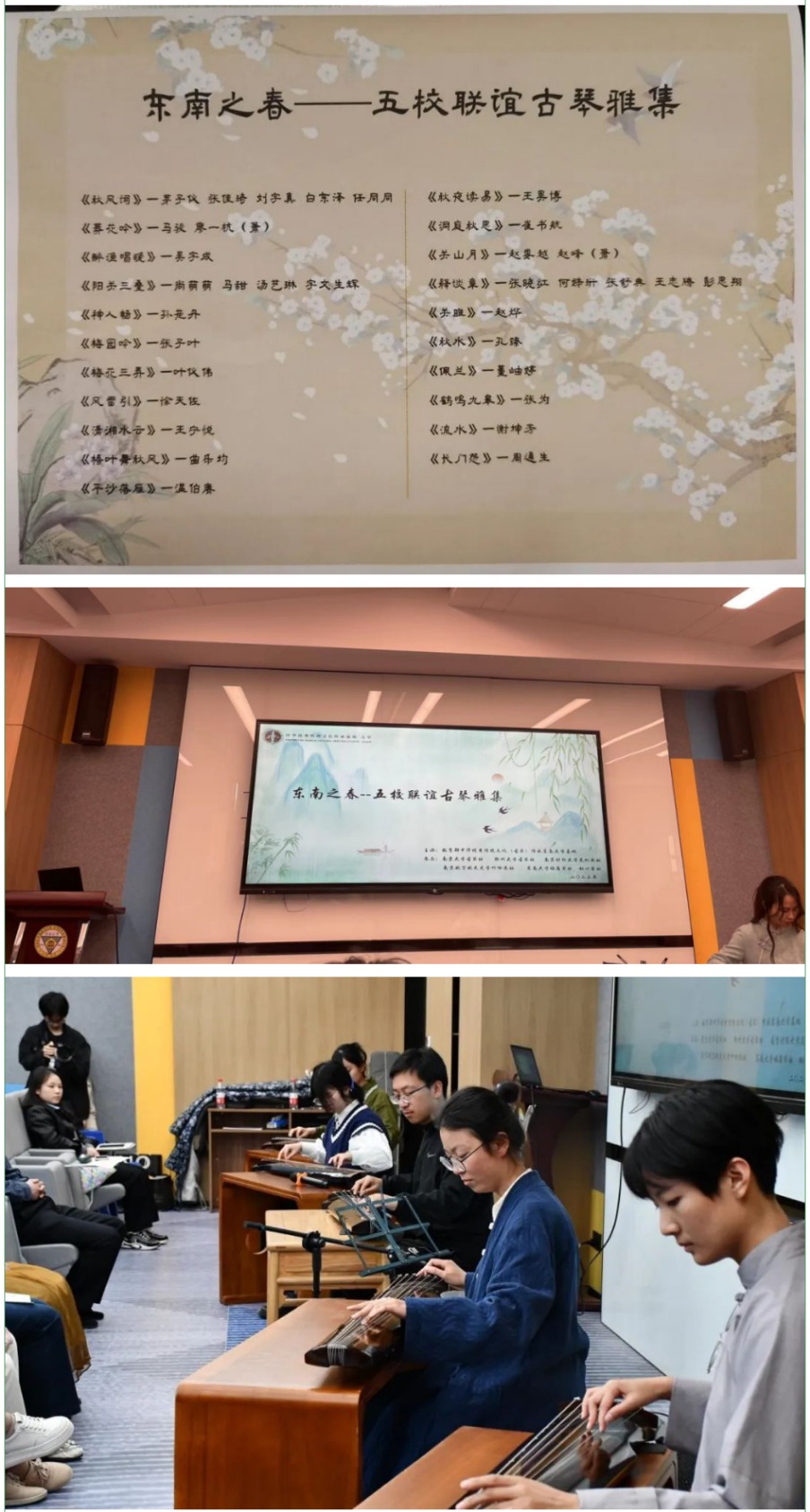 接下来,大家观赏了来自东南大学主办的“东南之春——五校联谊古琴雅集”。在本次古琴雅集活动上,大家聆听这种沁人心脾的旋律,感受的是中华千年文化的气息!