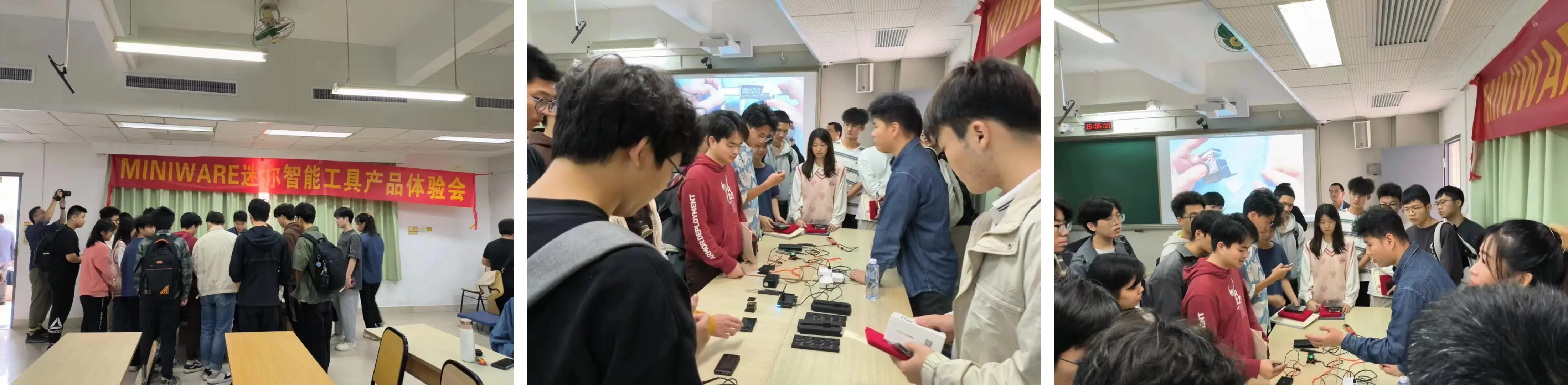 颁奖仪式结束后,同学们还兴致勃勃地参加了易迪赛公司的产品现场体验会,试用 e-Design 公司旗下的MINIWARE品牌多种新颖的迷你智能工具,这些小巧的电子工具与同学们的专业相通,使用便捷,拓宽了大家的视野,增长了见识、启发了思维,更加增强了科研创新的信心和勇气。