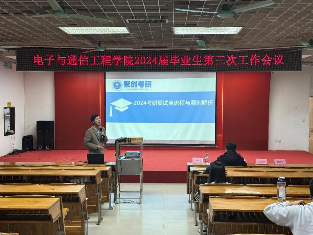 会议一共分为四个议程:第一、武装部于锦花老师做毕业生征兵宣传,第二、退伍士兵黄章少同学分享入伍心得,第三、辅导员欧阳曦老师做春招动员,第四、聚创考研机构做考研复试培训和调剂经验分享。