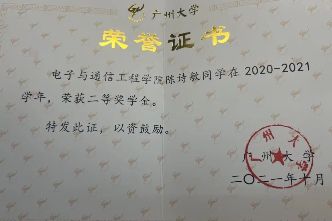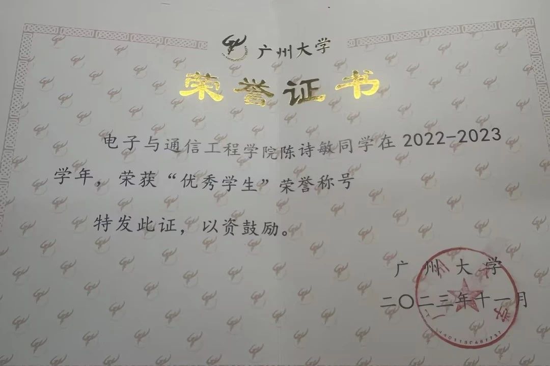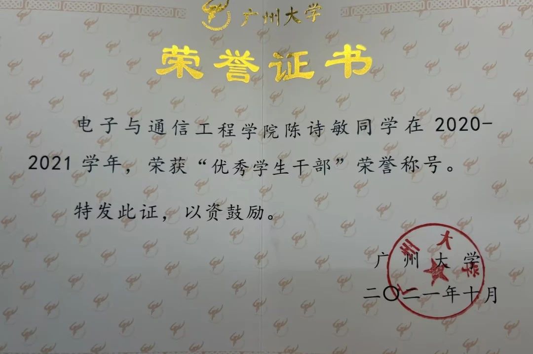 陈诗敏,2020级电子信息工程专业的本科生,也是电信201班的学习委员,总绩点3.55。兴趣爱好是跳舞和旅游。