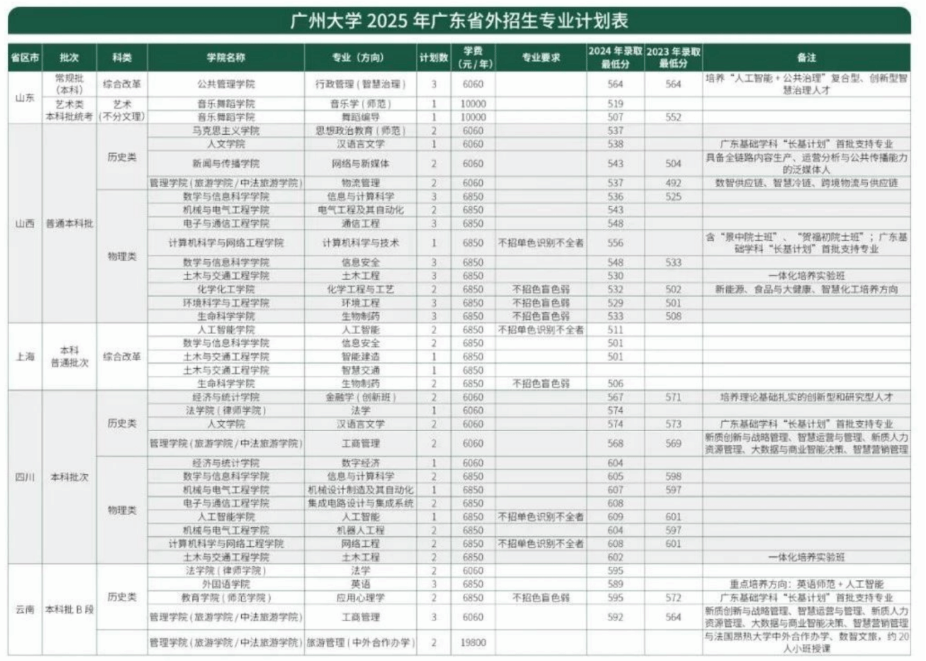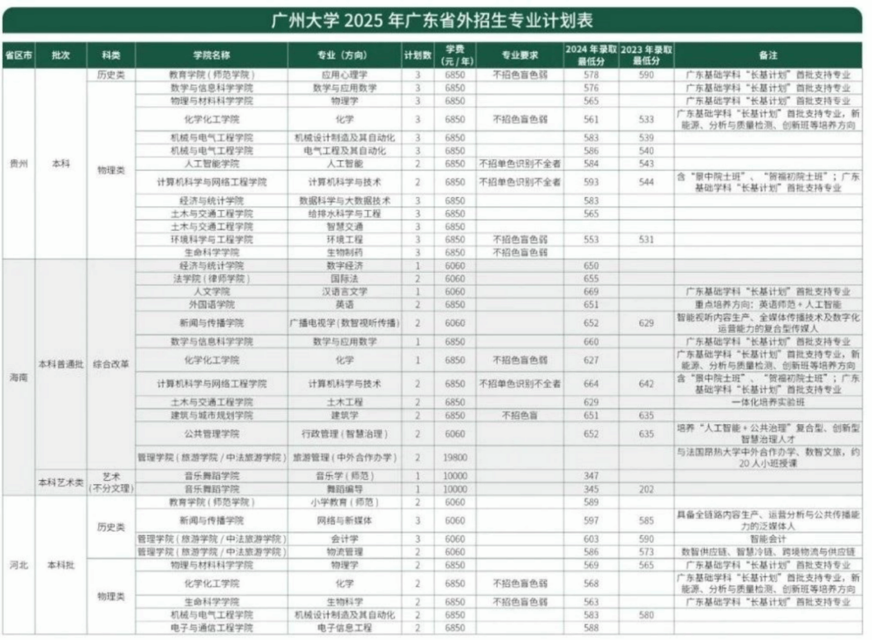 2025年广东本科体育、播音与主持、音乐、舞蹈、美术类招生计划