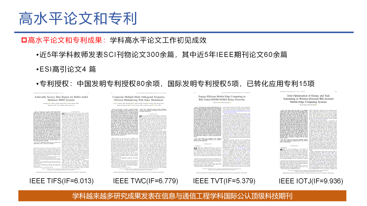 专业教师近年发表学术论文120篇,其中与美国北卡州立大学、北卡罗来纳大学、中山大学、华南理工大学、电子科技大学、鹏城实验室、之江实验室、中国科学院沈阳自动化研究所等,在IEEE Transactions on Microwave Theory and Techniques、IEEE Transactions on Electron Devices、IEEE Transactions on Industrial Electronics、IEEE Transactions on Cybernetics、IEEE Internet of Things Journal、The Astrophysical Journal Supplement Series等期刊合作发表论文20余篇。同时与罗克韦尔、浙江中控、杭州和利时、广州安凯微电子、绿盟科技等国际知名企业合作共建具有国际领先水平的科研教学平台。团队设置引智专项,与国外知名高校深入开展交流合作。