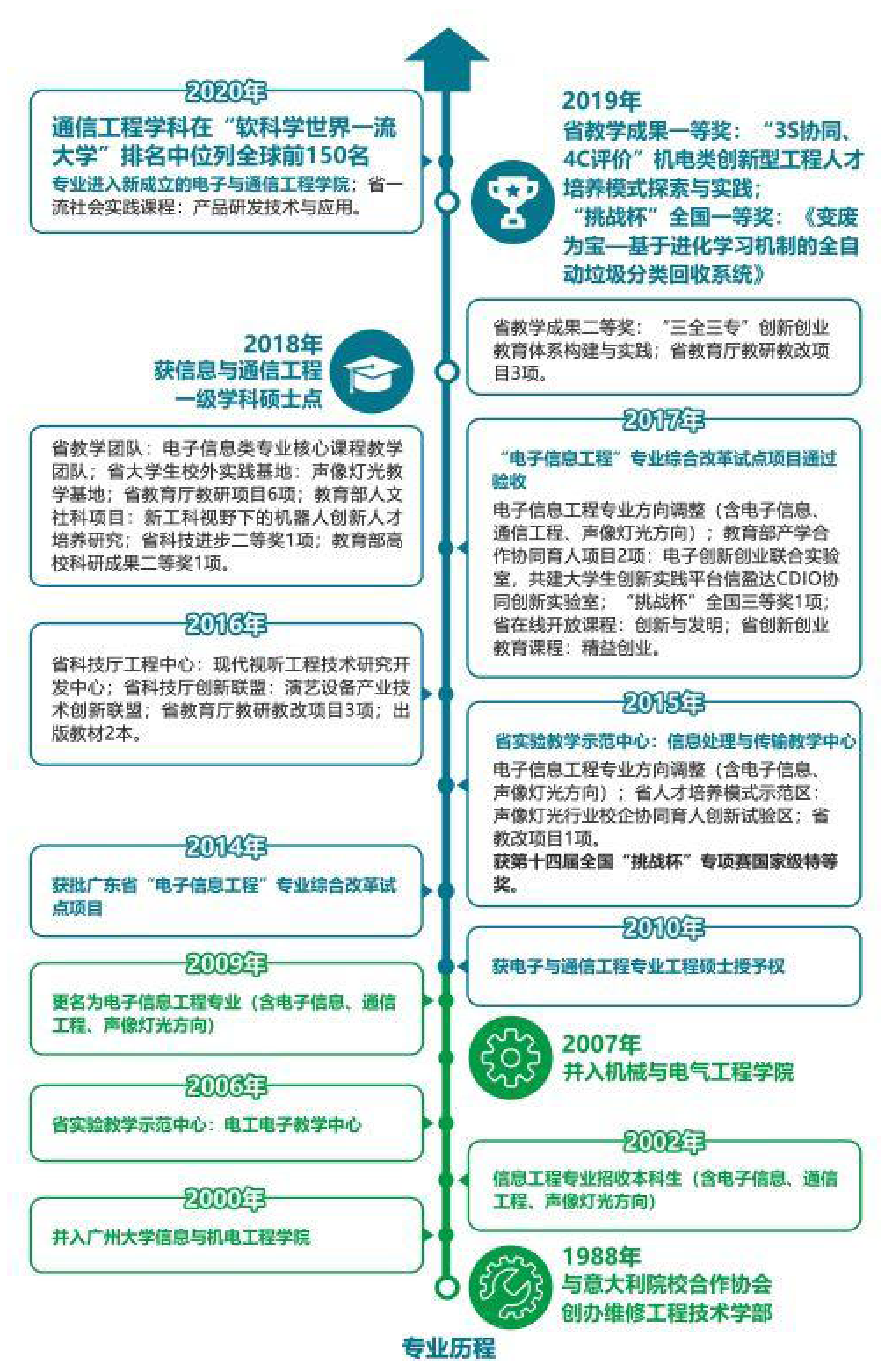 电子信息工程专业是国家一流本科专业建设点、通过IEET国际工程认证。在2023的软科中国大学专业排名中被评为A级别,排名61。拥有两个广东省工程技术研究中心、一个广东省实验教学示范中心、一个广州市重点实验室,即广东省现代视听信息工程技术研究中心、广东灯光与声视频工程技术研究中心、广东省信息处理与传输实验示范中心、广州市信息处理与传输重点实验室。本专业是广东省综合改革试点专业,是广东省人才培养模式创新实验区。