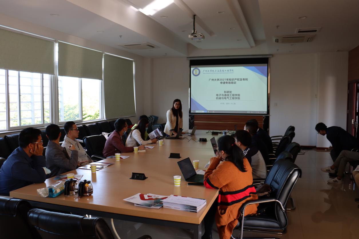 为贯彻实施国家“创新驱动发展战略”,提高学校师生知识产权创作、运用、保护和管理能力,提升知识产权质量,推动学校知识产权工作,2021年11月26日上午,广东高航知识产权运营有限公司受邀来我院就现有专利政策制度下如何更好地实现科研成果的保护与增值等方面开展专场培训,培训在电子信息楼606顺利举办。广东高航知识产权运营有限公司国际专利部负责人谢杺樾、国际专利顾问杨蓓蓓、学校科研处顾书老师、sm调教
