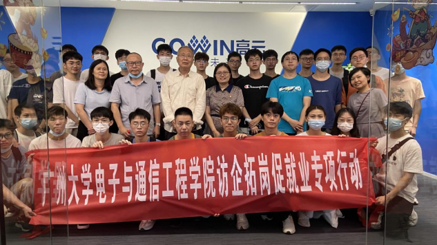 为进一步加快健全高校毕业生市场化社会化的就业创业工作机制,加强校企合作,广泛开拓毕业生就业渠道和就业岗位,助力学生高质量就业,2022年4月28日上午学院党委副书记谢玲、学生第一党支部书记欧阳曦、学生第三党支部书记王沁芳、团委书记张虓带领各年级学生一行37人,实地走访专业从事国产现场可编程逻辑器件(FPGA)研发与产业化的知名公司——广东高云半导体科技股份有限公司进行参观和学习。师生一行受到高云总裁宋宁博士、拓展部总监李挺、项目专员黄海森等的热情接待。