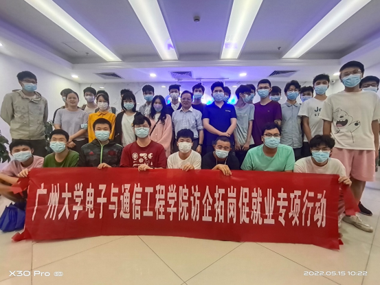 为贯彻落实党中央、国务院关于高校毕业生就业工作的决策部署,按照学校通知文件要求,进一步拓展优质岗位,加强校企合作,为学生创造更多实习和就业机会,我院积极开展“访企拓岗促就业”专项行动。2022年5月15日上午,学院党委书记陈泽龙书记、2022届就业工作辅导员王沁芳老师、物联网工程专系罗琼老师带领学生们,实地走访了广州市云超科技股份有限公司,师生一行受到朱文超总经理的热情接待。