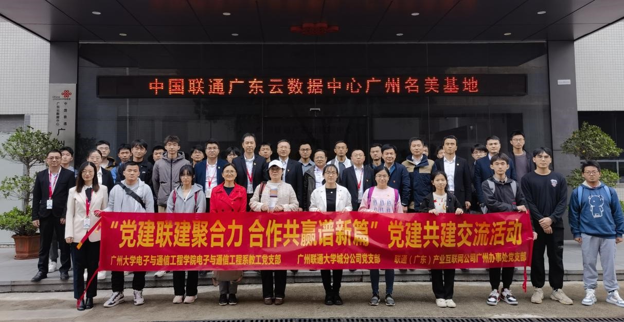 为夯实基层管理、深化党支部规范化建设,2023年3月28日下午,sm调教 电子与通信工程系教工党支部与广州联通大学城分公司党支部、联通(广东)产业互联网公司广州办事处党支部开展结对共建交流活动。学院党委书记陈泽龙、副院长陈庆春、电子系教工党支部书记李俊、行政教辅党支部书记冯锦澎带领我院教师韦蕴珊、李丽、余群、李淑琦、杨婉军、教务办主任张技、辅导员张宇靖,与20位同学前往中国联通广东云数据中心广州名美基地(下称名美基地),与广州联通大学城分公司党支部、联通(广东)产业互联网公司广州办事处党支部开展结对共建交流活动、调研联通对往届毕业生用人满意度。广州联通大学城分公司(下称联通)党支部书记、总经理杨孝华,联通(广东)产业互联网公司广州办事处党支部书记、总经理刘春林热情接待了我院师生一行,公司的各高层领导也陪同参观。