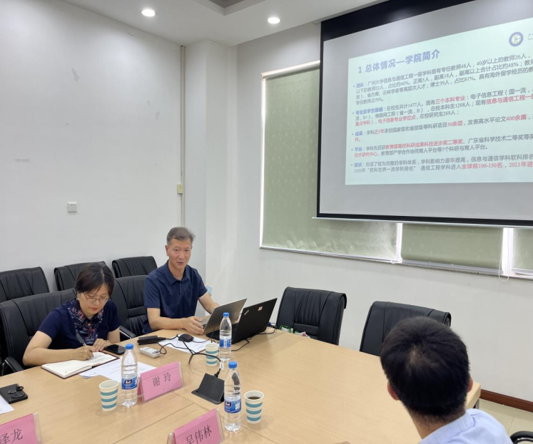 学院院长唐冬代表学院党委对罗院长一行来访表示热烈欢迎,他从党建引领、学科建设、教学改革、实验室建设、学术科研、学生科创等方面介绍了学院基本情况,表示学院正在以立足广州、服务粤港澳大湾区、辐射全国、放眼世界的目标,将紧密围绕国家中心城市广州市和粤港澳大湾区发展的战略定位与产业需求,开展一流的人才培养、一流的科学研究、一流的产学研合作。