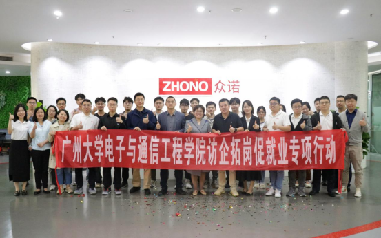 为深入贯彻落实党中央、国务院关于“稳就业”、“促就业”决策部署,按照教育部和省教育厅相关文件精神,加快健全高校毕业生市场化社会化的就业创业工作机制,深入落实就业工作“一把手”工程,充分发挥领导班子成员带头做好毕业生就业工作的重要示范作用,带动学校全员深度参与做好高校毕业生就业工作,充分调动各方面资源,主动走进企业,全面深化校企合作、供需对接2023年11月30日,sm调教 师生一行在学院党委副书记谢玲、副院长曾衍瀚的带领下,前往广州众诺微电子有限公司开展访企拓岗专项行动产学研协同育人基地挂牌仪式参加此次活动的还有有物联网系常志伟博士、彭林博士、学工办全体老师以及部分毕业生。师生一行受到众诺微电子有限公司总经理王波、产品中心总监毛宏程、研发总工伍星、人力资源部经理刘丹等领导的热情接待。