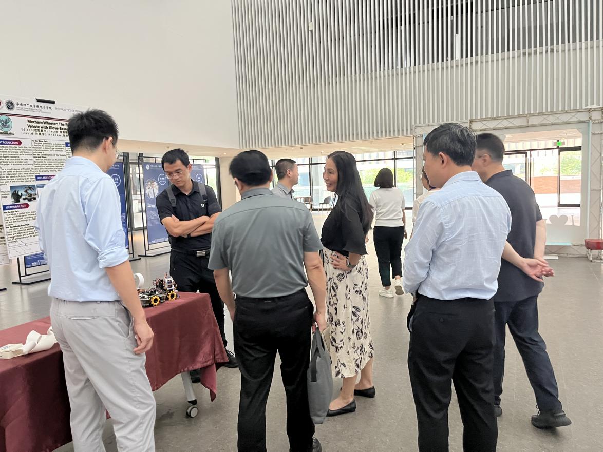 座谈会后,一行人参观了微电子学院的实验与办公场地。参观期间,季飞书记介绍了微纳电子工艺洁净实验室、微纳器件测试实验室以及本科教学实验室的建设情况。