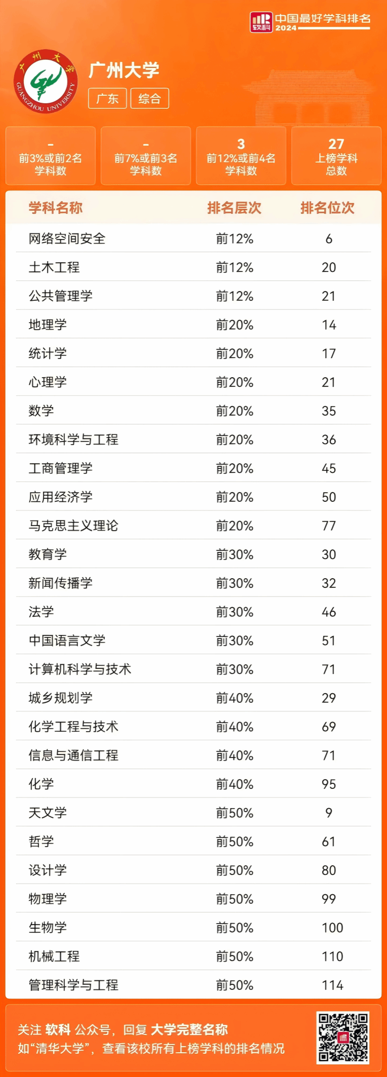 近日,高等教育评价专业机构软科正式发布“2024软科中国最好学科排名”, 我校共有27个上榜学科,上榜学科数占本校在建学科总数的79.4%,其中位列全国7%-12%的学科数有3个(土木工程、网络空间安全、公共管理学),位列全国12%-50%的学科数有24个,上榜学科数在全国高校中排名第45位,在非“双一流”高校中排名位列全国第二。
