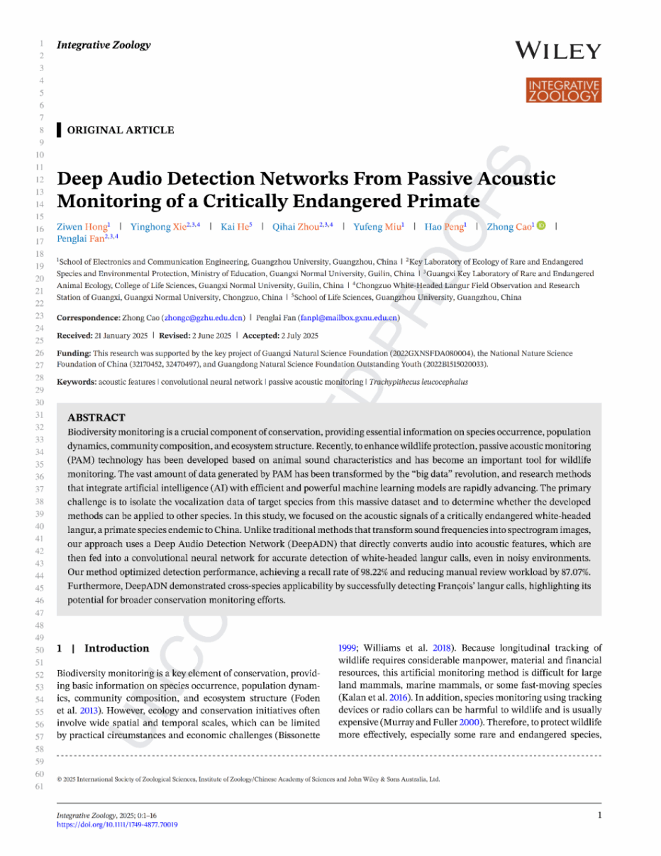 相应的规划和准备:研究生阶段一直都在学习声音处理相关工作,了解智能语音领域的前沿技术,并且开发了适用于白头叶猴叫声检测的模型。
