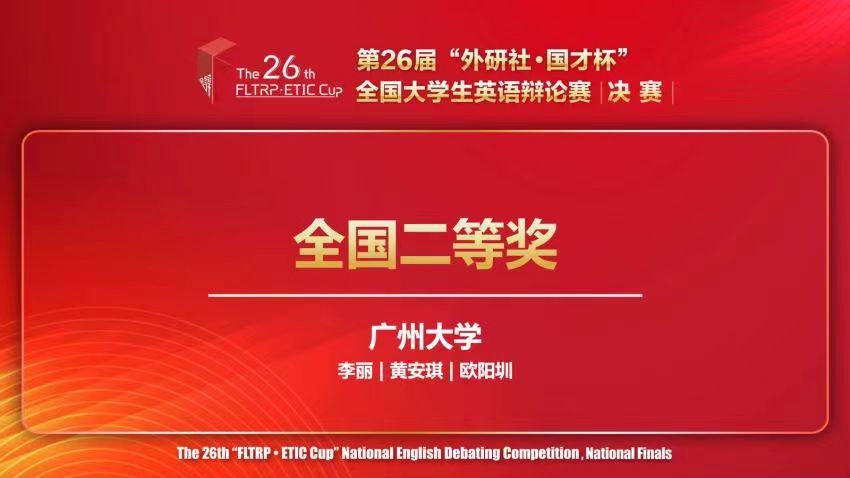 电信荣耀:我校学生获第26届“外研社·国才杯”全国大学生英语辩论赛全国决赛二等奖