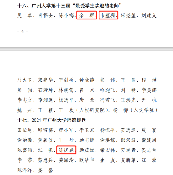 关于对2021-2021学年立德树人工作先进集体和个人给与表扬的通报,2020-2021学年,全体教职工以习近平总书记关于教育的重要论述和“七一”重要讲话精神为指导,以党史学习教育为契机,在学校党委的正确领导下,紧紧围绕高水平大学建设任务,凝心聚力,干事创业,涌现出一批在立德树人工作中表现突出的先进集体和个人。其中我院多名教师取得佳绩,陈庆春老师被评为“2021年sm调教