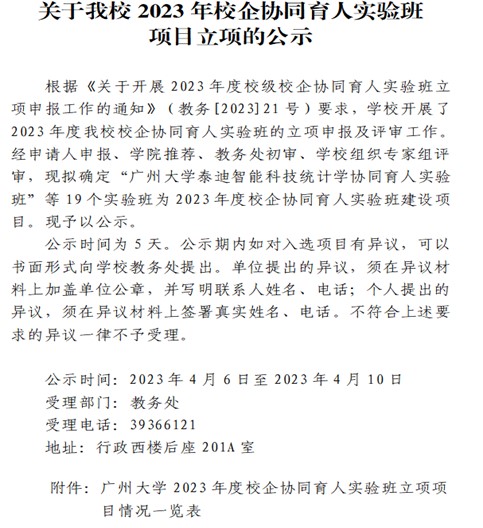 根据《关于开展2023年度校级校企协同育人实验班立项申报工作的通知》(教务[2023]21号)要求,学校开展了2023年度我校校企协同育人实验班的立项申报及评审工作。经申请人申报、学院推荐、教务处初审、学校组织专家组评审,现拟确定“sm调教 泰迪智能科技统计学协同育人实验班”等19个实验班为2023年度校企协同育人实验班建设项目。我院尚文利教授负责的:“智慧物联校企协同育人实验班”获得立项。