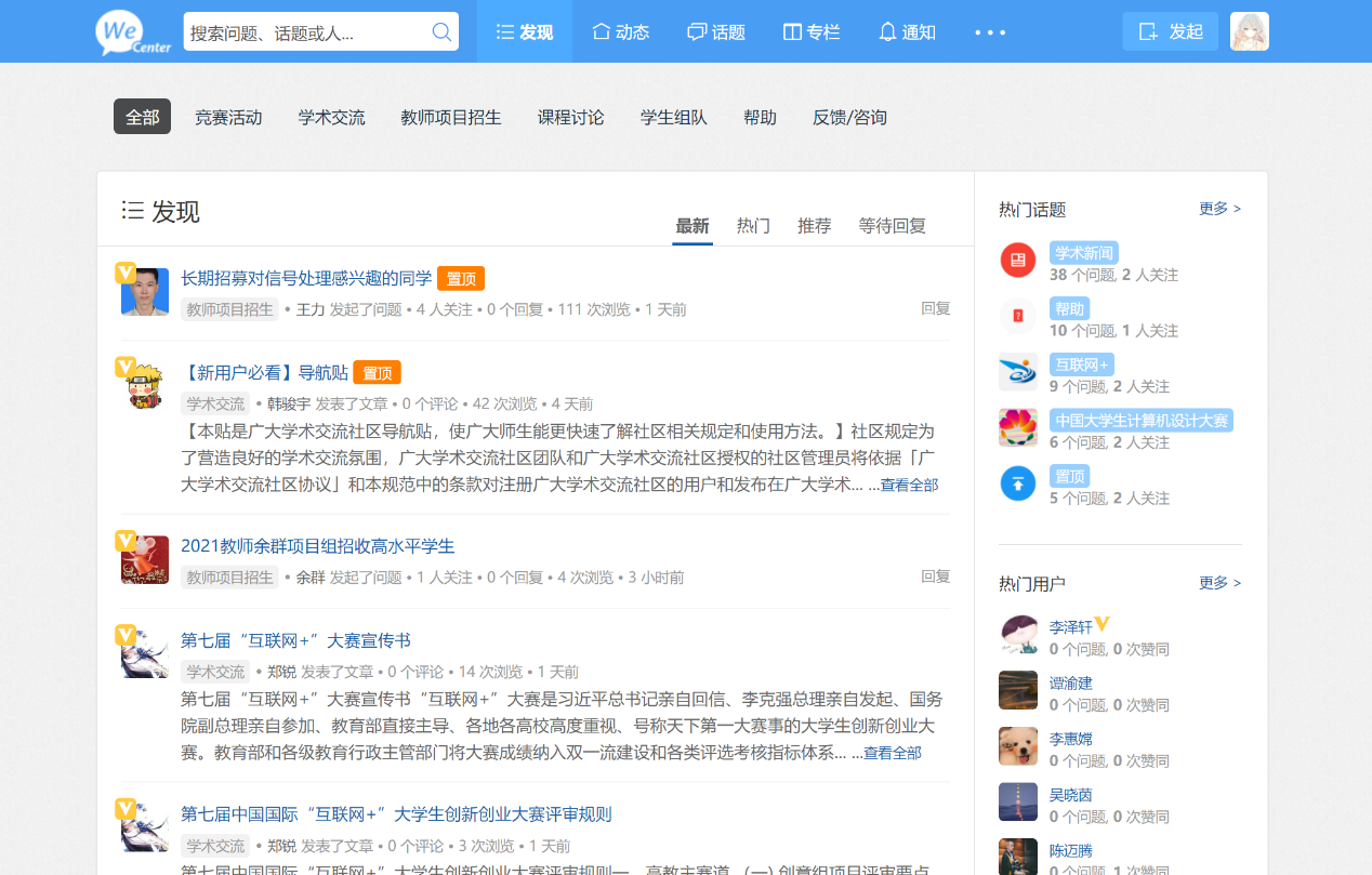 由于微信群文件、聊天记录易丢失等问题,日后比赛通知的整理、比赛相关讨论、发布最新消息和赛事咨询等相关活动都将在广大学术交流社区进行。同学们赶快注册账号哦~