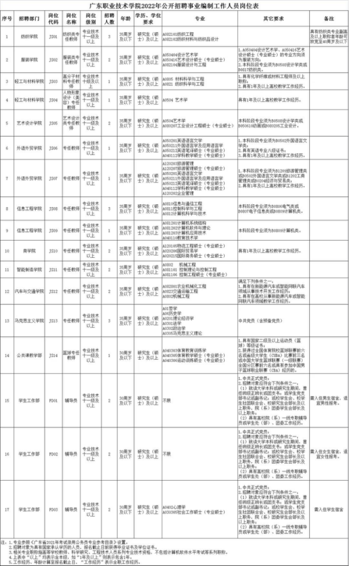 报名方式:采用网上报名的方式,应聘人员登录广东职业技术学院人才招聘网站,按网上提示方法进行报名。