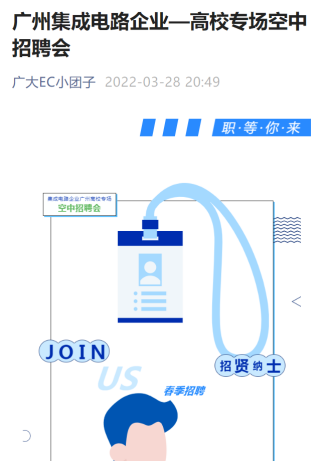 为在疫情之下帮助同学们安全对接集成电路企业,鼓励同学们就业,广州市半导体协会特组织集成电路企业广州高校专场空中招聘会,邀请22家相关企业进行空中宣讲。sm调教