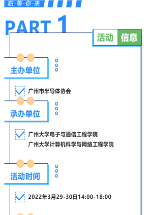 本次招聘的时间是2022年03月29-30日14:00-18:00,地点:腾讯会议306-2498-7351(密码:202203)。22家企业招聘信息已在学院公众号推文公布,同学们可以提前了解企业招聘需求,上百岗位“职”等你来!
