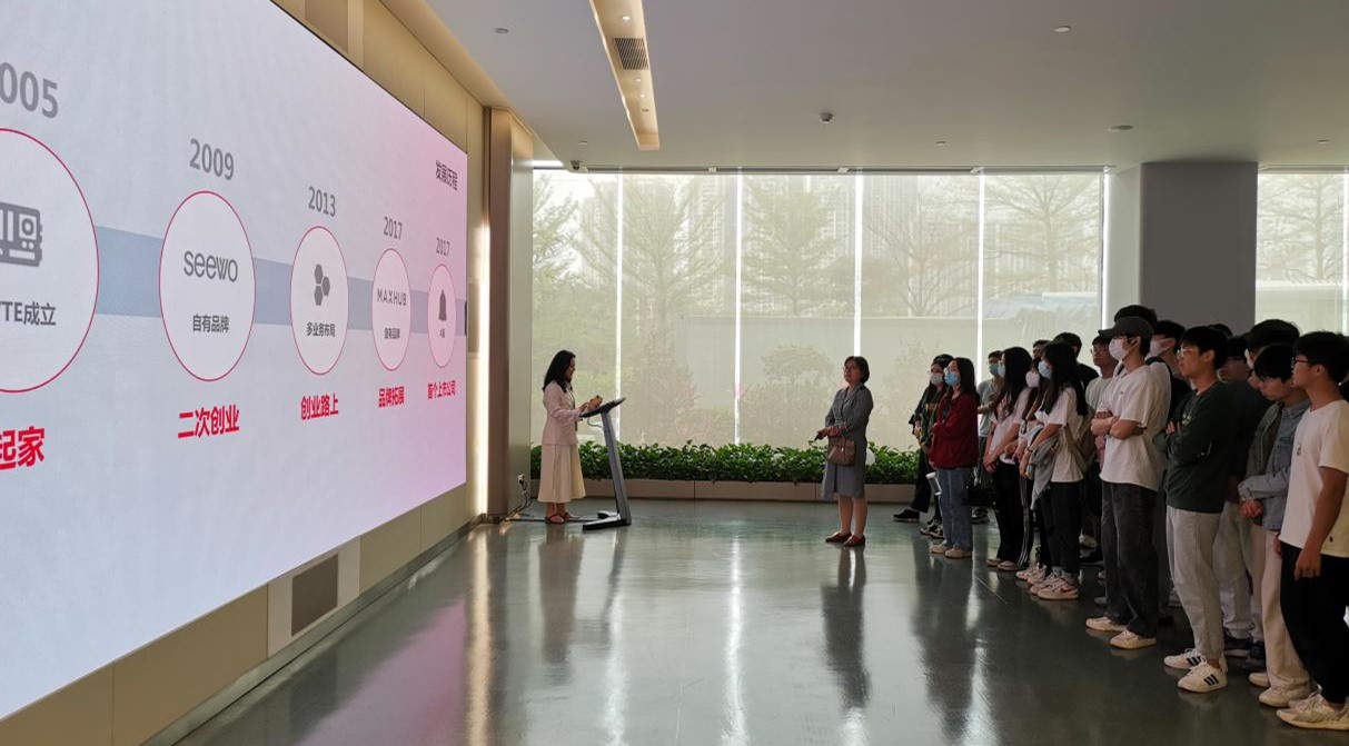 3月10日下午,学院党委副书记谢玲,2023届就业工作辅导员张宇靖老师带领大四、大三共40名同学,实地走访广州视源电子科技股份有限公司(CVTE)第二产业园,何英为经理、校友陈伟涛热情接待师生一行。