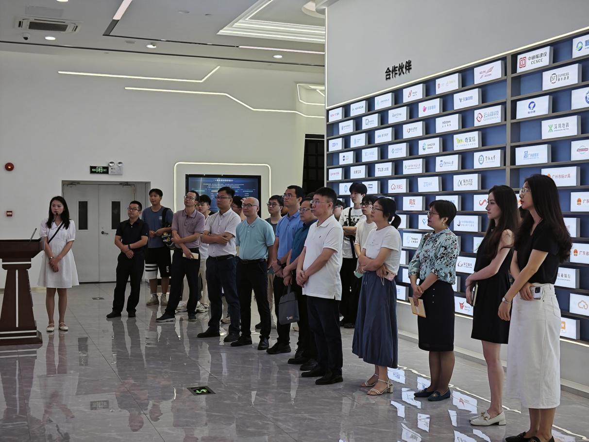 师生一行人在余应群副总经理的带领下,依次参观了亿迅科技的公司展厅,大致掌握公司员工队伍、专家人才、公司实力等基本情况,并对亿迅公司在助力政府提升服务、加快建设平安广东、法治广东等方面有了全面了解。